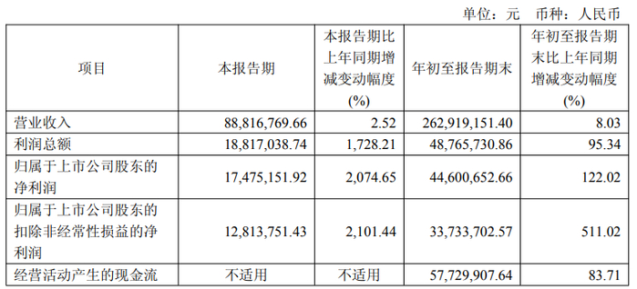 其中第三季度,卓易信息营业收入为8881.68万元,同比增长2.52%;归母净利润为1747.52万元,同比增长2074.65%;扣非归母净利润为1281.38万元,同比增长2101.44%;基本每股收益0.14元。