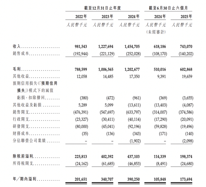 2025年上半年,蔓迪国际收入为7.43亿元,同比增长20.2%;期内利润为1.74亿元,同比增长64.1%;毛利率为81.1%。