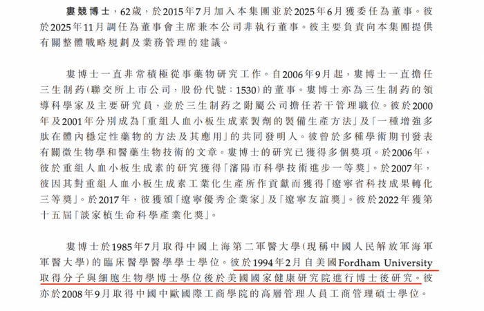 于桉,43岁,于2020年5月加入蔓迪国际,并于2020年5月16日获委任为公司首席执行官。于桉于2025年10月获委任为公司董事,并于2025年11月调任为公司执行董事。其负责公司整体管理,包括商业推广、药物研发、生产质量及其他相关工作。