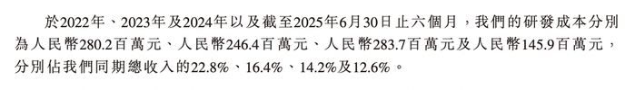 值得注意的是,2022年-2024年以及2025年上半年,锐明技术的研发成本分别为2.8亿元、2.46亿元、2.84亿元,1.46亿元,研发费用率22.8%、16.4%、14.2%、12.6%。
