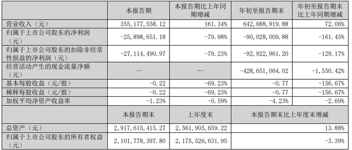其中第三季度,奥尼电子营业收入为3.55亿元,同比增长161.34%;归母净利润为-2589.87万元,同比下降79.98%;扣非归母净利润为-2711.45万元,同比下降79.23%;基本每股收益-0.22元。