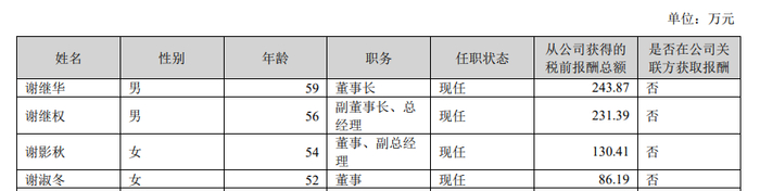 据瑞财经查阅,谢影秋与谢继华、谢继权、谢淑冬、谢道平和林彬彬共同构成延江股份控股股东及实控人。其中,谢道平和林彬彬系夫妻关系,谢继华、谢继权、谢影秋、谢淑冬四人为其子女。现年60岁的谢继华现任延江股份董事长,57岁谢继权任延江股份总经理,二人与谢淑冬三人同为延江股份董事。