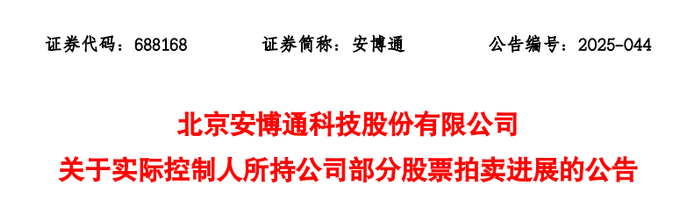 安博通表示,本次司法拍卖不会影响公司控制权稳定,不会导致控股股东和实际控制人发生变化,也不会对公司日常经营管理产生重大不利影响。