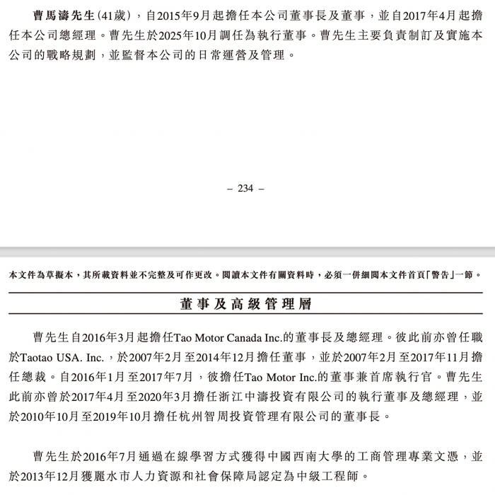 父亲曹跃进在2004年创立涛涛集团,将生意拓展到安全门和汽摩配领域;1984年出生的曹马涛,在31岁时创立了涛涛车业。