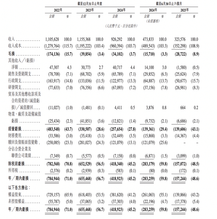 业绩方面,2022年至2024年,奥动新能源收入分别为11.06亿元、11.55亿元、9.26亿元;年内亏损分别为7.85亿元、6.55亿元、4.19亿元;毛损率分别为15.7%、3.4%、3.7%。