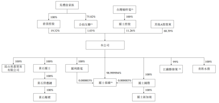 递表前,吴礼淦家族通过碧景控股、合拍友联合计控制公司20.35%的股权,为实际控制人;台湾楠梓电通过沪士股份持有公司11.26%的股权。