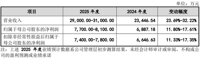 恒道科技预计2025年度营业收入较上年同期增长23.69%至32.22%,归属于母公司股东的净利润较上年同期增长11.80%至17.61%,扣除非经常性损益后归属于母公司股东的净利润较上年同期增长11.33%至17.35%,收入及利润呈稳步增长趋势。