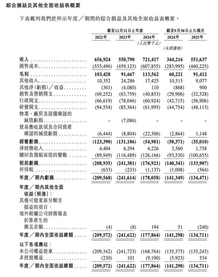 2025年前三季度,公司实现收入为5.52亿元,同比增长60.26%;期内亏损为1.34亿元,而上年同期亏损为1.41亿元。