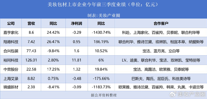 另据美妆产业圈梳理,从已披露三季报的包材上市企业来看,营收表现呈现明显分化。