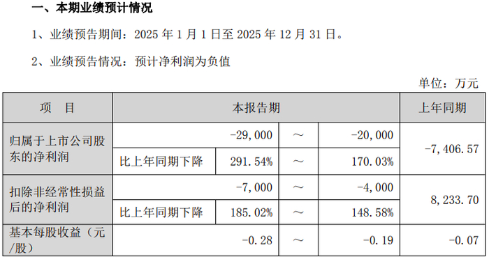 1月31日晚间,深交所上市公司双鹭药业(002038.SZ)披露的2025年业绩预告,再次将这家老牌医药企业推向舆论焦点——报告期内,公司归母净利润预计亏损2.00亿元至2.90亿元,较上年同期的-7406.57万元,亏损幅度同比扩大170.03%至291.54%,这也是公司上市20余年来连续第二年亏损,距离2024年创下的“上市首亏”仅过去一年时间。更值得市场关注的是,公司扣非净利润同样表现疲软,预计为-7000万元至-4000万元,较上年同期的8233.70万元由盈转亏,同比降幅达148.58%至185.02%,盈利能力持续承压。