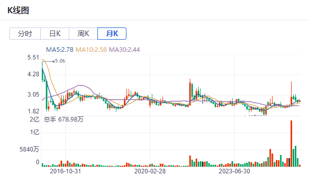 从二级市场走势看,有的是常年“波澜不惊”。上海建工自2016年起月线横盘近9年,股价在2-3元区间波动,属于上海国资委旗下建筑行业龙头,基本面稳定但市场关注度较低。