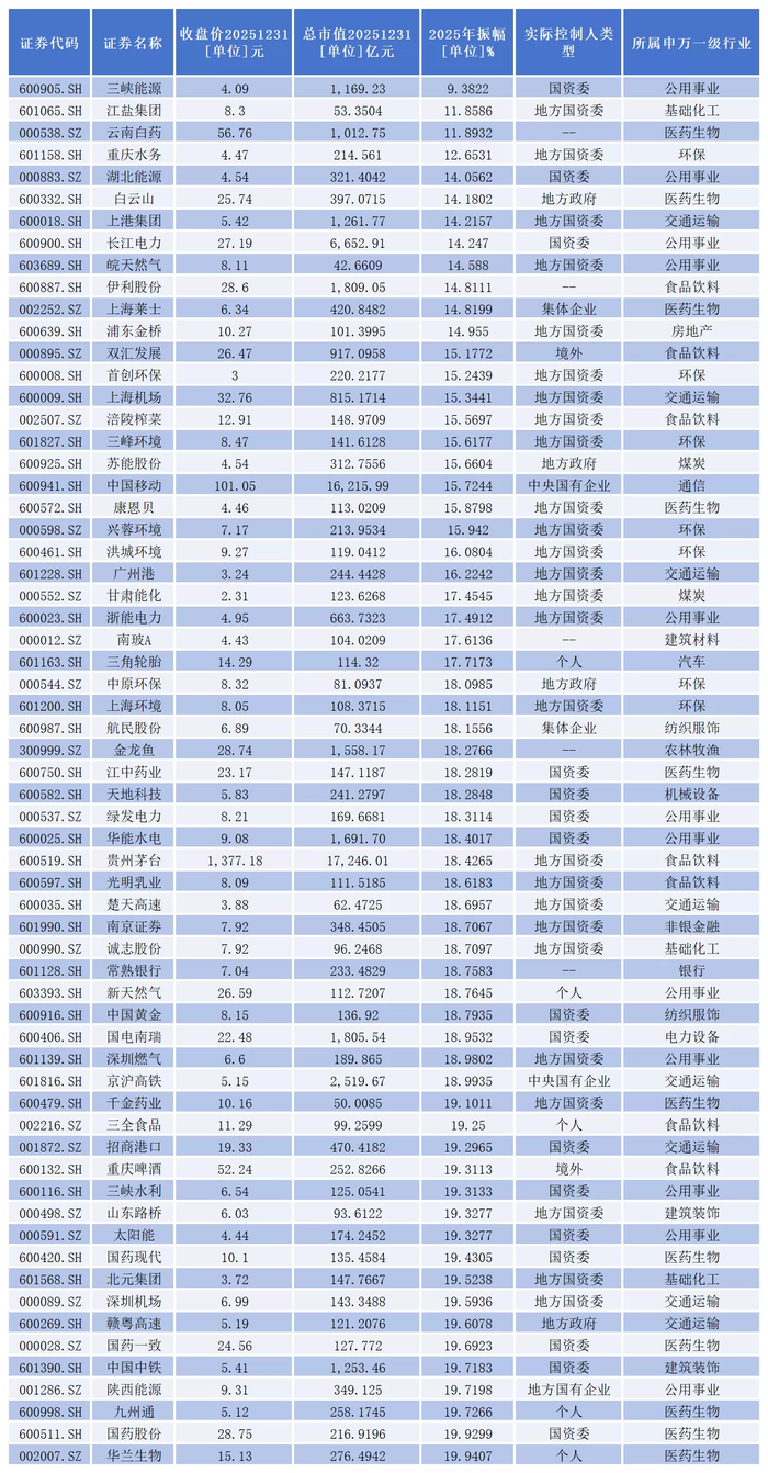 行业属性方面,多为传统行业或成熟行业的企业,业务模式相对稳定,受市场情绪和宏观经济波动的影响较小。