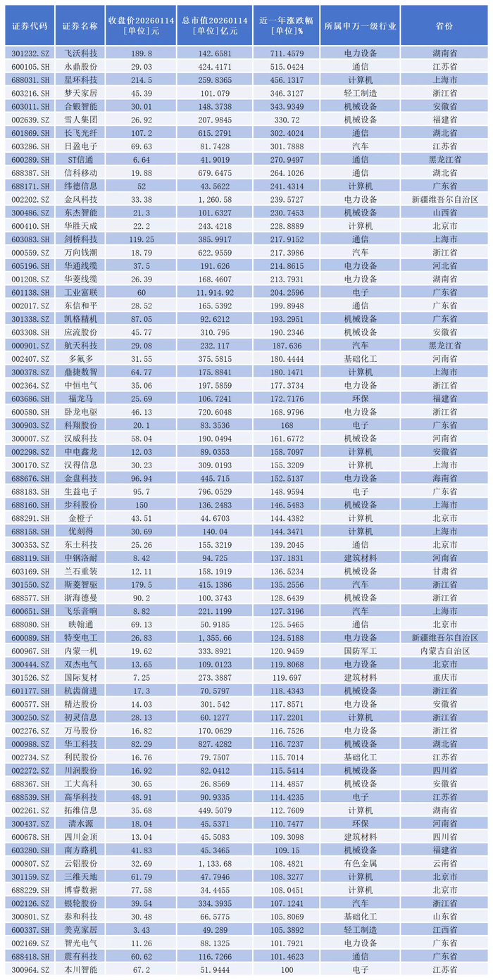 从二级市场表现看,70只个股近一年涨幅成功实现翻倍。飞沃科技(301232.SZ)、永鼎股份(600105.SH)、星环科技(688031.SH)、梦天家居(603216.SH)、合锻智能(603011.SH)、雪人集团(002639.SZ)、长飞光纤(601869.SH)、日盈电子(603286.SH)等8只个股涨幅超300%。