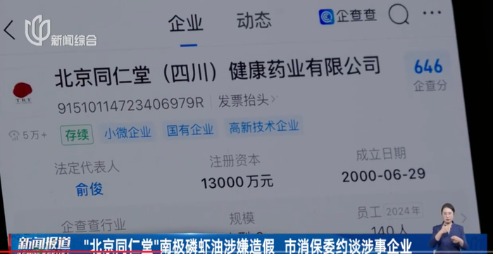 上海市消保委经过大量调查,认为涉事企业存在故意造假行为,侵害消费者权益,于15日约谈了经销企业'北京同仁堂(四川)健康药业有限公司',以及生产企业 '安徽哈博药业有限公司'。