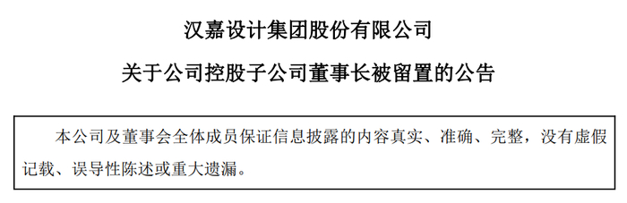 然而,沈刚的突然被留置,给上市公司带来了多个不确定性:其一,刚刚业绩反转仅仅三个季度的汉嘉设计未来的业绩增长蒙上了一层阴影。尽管汉嘉设计在公告中强调,沈刚不在上市公司担任职务,公司治理结构完善,日常经营不受重大影响;其二,目前控股股东股权的交易尚未完成,不知道是否会受此影响;更为关键的是,沈刚被留置的原因尚未披露,而从上市公司和机构交流的过程中发现,政府端的业务是伏泰科技业务的重要来源之一,若此次沈刚被立案留置涉及到相关地方政府,可能还将引发回款、业务开拓等多方面的负面连锁反应。(文 | 公司观察,作者 |曹晟源 ,编辑 |邓皓天 )