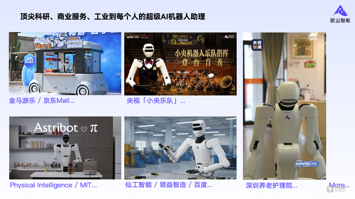 在商业化方面,基于“顶尖本体-领先遥操-高效模型”的组合拳,星尘智能已获得数千台订单,在科研、文旅文娱、商业服务、工业物流等高价值场景多点开花。