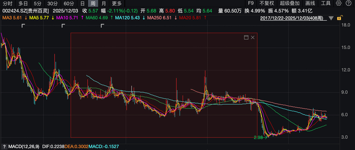 复盘来看,在纾困期间,贵州百灵股价长期在7-8元之间,区间最高价11.97元、最低价5.68元。