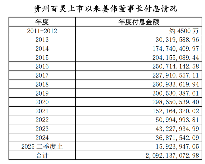 根据贵州百灵最新的质押公告,目前姜伟持有公司股份2.45亿股,占总股本的17.55%,且已100%被质押。而据姜伟方提供的资料显示,姜伟的财务状况每况愈下,截至2025 年二季度,姜伟已支付利息约21亿元,最终导致大量股权面临质押违约被强制减持,金额达42亿元。