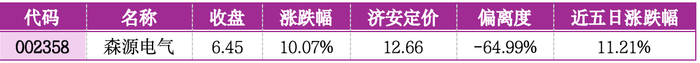 机会提示:森源电气偏离济安定价-64.99%,仍处于深度低估区间。作为电气设备领域的弹性标的,公司受益于新能源电力产业链的发展,本次涨停验证了资金对低估值标的的认可,短期内有望延续估值修复行情。