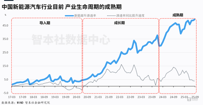 然而,这轮大幅扩产发生在新能源车渗透率换挡、下游资本开支愈发谨慎的背景下。当前国内新能源汽车渗透率已超过54%,2025年全年新能源乘用车销量1248万辆,同比增速仅16.17%,较此前高增阶段明显放缓,“油电切换”并未加速,燃油车通过降价促销仍在争夺保守消费者。