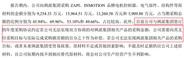 前文已提到,嘉晨智能与供应商还签有年度采购目标与补偿条款,使得公司不仅在供货上受制于人,在谈判中亦处于弱势。