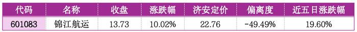 机会提示:该股偏离济安定价 - 49.49%,估值处于低位,航运板块复苏预期下,估值修复逻辑顺畅,短期具备布局价值,关注板块整体走势。