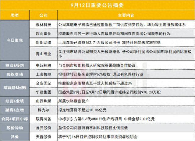 新炬网络(605398.SH)发布股票交易异常波动公告,股东上海森枭计划以集中竞价交易、大宗交易方式减持合计不超过244.07万股公司股份,减持比例合计不超过公司总股本的1.50%,其减持期间为2025年月9日-2025年11月8日。截至2025年9月12日收盘,上海森枭已通过集中竞价交易方式减持公司股份162.71万股,其本次减持计划尚未实施完毕,上海森枭仍在其减持计划实施期间。程永新计划以集中竞价交易、大宗交易方式减持合计不超过162.72万股公司股份,减持比例合计不超过公司总股本的1.00%,亦不超过其持有公司股份总数的25%,其减持期间为2025年8月9日-2025年11月8日。截至 2025年9月12日收盘,程永新已通过集中竞价交易方式减持公司股份162.71万股,其本次减持计划已实施完毕。