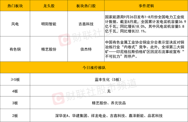 板块上,风电板块逆势走强,威力传动、明阳智能、吉鑫科技涨停,日月股份、天能重工等个股涨幅居前 。消息面上,国家能源局9月26日发布1-8月份全国电力工业统计数据。截至8月底,全国累计发电装机容量36.9亿千瓦,同比增长18.0%,其中风电装机容量5.8亿千瓦,同比增长22.1%。