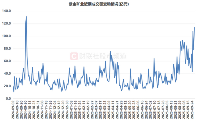 注:紫金矿业近期成交额变动情况(截至9月29日收盘)