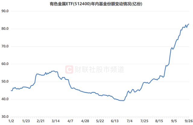 注:有色金属ETF(512400)年内基金份额变动情况(截至9月26日数据)