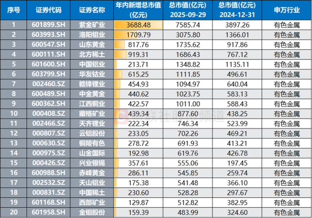 注2:总市值居前的有色金属股(截至9月29日收盘)