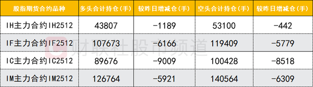 四大期指主力合约中,IH、IF、IC、IM合约多空双方均减仓,IH、IF、IC合约多头减仓数量较多。