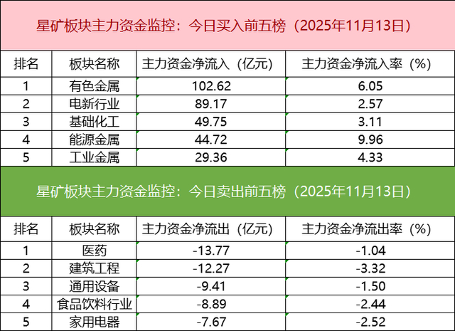从主力板块资金监控数据来看,有色金属板块主力资金净流入居首。