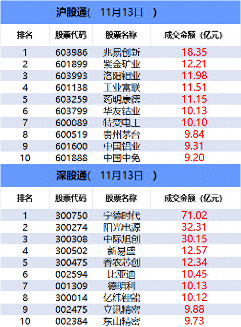 从深股通前十大成交个股来看,宁德时代位居首位;阳光电源和中际旭创分居二、三位。