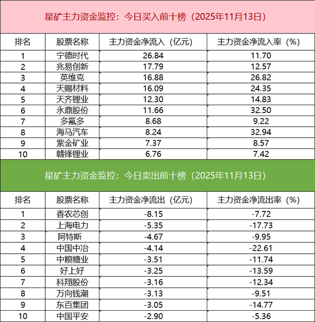从个股主力资金监控数据来看,主力资金净流入前十的个股所属板块集中在锂电产业链,宁德时代净流入居首。