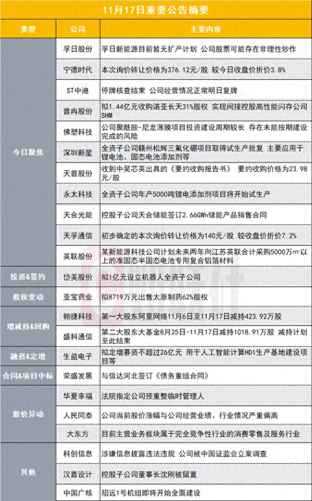 宁德时代(300750.SZ)公告称,根据2025年11月17日询价申购情况,初步确定的本次询价转让价格为376.12元/股。本次询价转让拟转让股份已获全额认购,初步确定受让方为16家机构投资者,拟受让股份总数为4563万股。