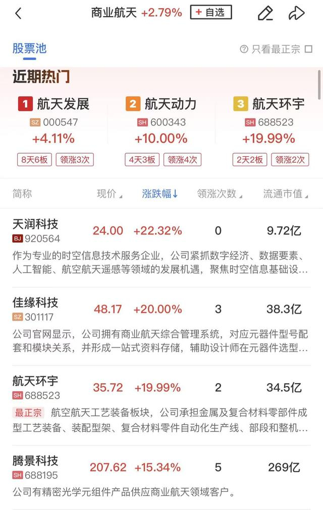 商业航天临近午间收盘再度异动,航天环宇20cm2连板,上海港湾再度涨停,再创历史新高,超捷股份、新雷能、天银机电、星图测控、乾照光电、上海沪工等跟涨。