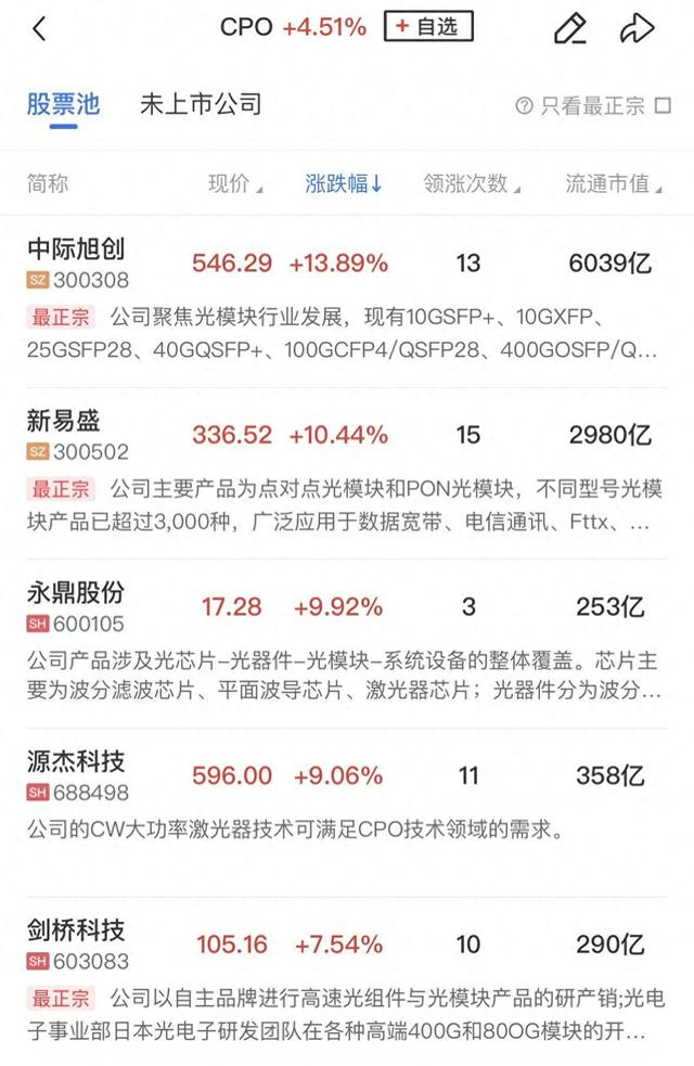板块上,CPO板块再度走强,核心股中际旭创涨超13%再创新高,长光华芯连续两日20CM涨停,此外赛微电子、新易盛、东山精密、仕佳光子等个股同样涨幅居前。