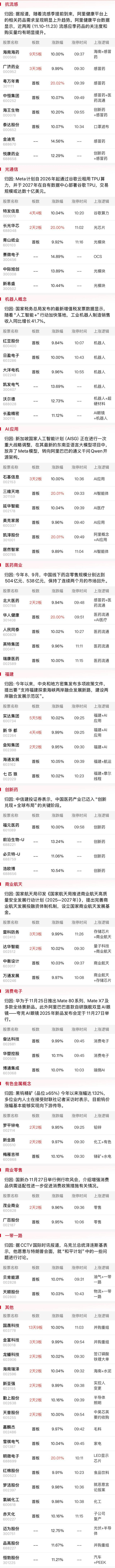 综合来看,今日早盘市场延续反弹,三大指数集体上涨。科技股方向集体走强,CPO板块领涨,核心标的中际旭创再创新高,此外,机器人、半导体、消费电子等方向同样表现亮眼,而抗流感概念股延续近期强势,多股涨停。但需注意的是,今日下跌个股数量较之前两日明显增多。其中军工板块领跌,而商业航天概念则在开盘冲高后显著回落。整体而言在增量资金不足的情况下,后续大概率还是会呈现结构性的分化,留意几大热门板块的轮动节奏或是关键。
