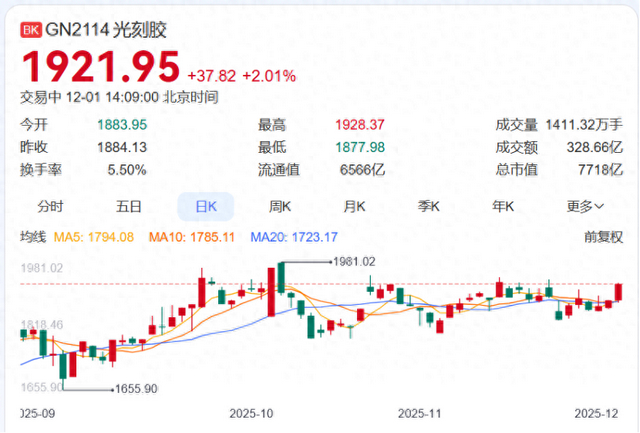 银河证券表示,“十五五”规划重点聚焦关键核心技术领域的自主突破,设备等领域是直接受益环节之一;而光刻胶作为半导体制造的核心耗材,其本土化替代需求将随政策推进持续释放,据市场三方机构数据统计,预计2025年光刻胶市场规模可达123亿元。