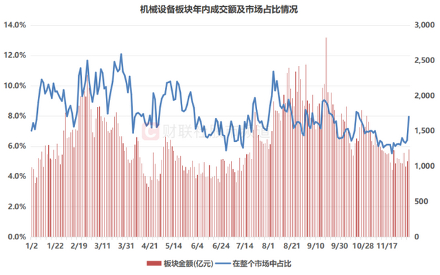 注:机械设备板块年内成交额及市场占比情况(截至12月4日收盘)