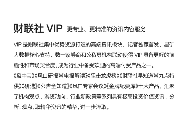 注:财联社VIP为内容资讯产品,并非投资建议。以下内容仅为资讯价值展示非对相关公司的推荐建议,非未来走势预测。投资有风险,入市需谨慎。
