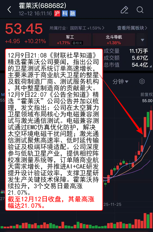 12月9日22:07《公告全知道》 精选“霍莱沃”公司公告并加以梳理,发文指出:公司在太空算力卫星领域布局核心为电磁兼容测试与激光通信测试。电磁兼容测试通过EMC仿真优化防护,解决太空环境电磁干扰问题;激光通信测试聚焦高速率、低时延传输验证及极端环境适配。公司深度参与低轨卫星产业,提供相控阵校准测量系统等,订单随商业航天需求增长,并推进AI+CAE研发提升设计验证效率,支撑卫星研发生产关键技术保障。