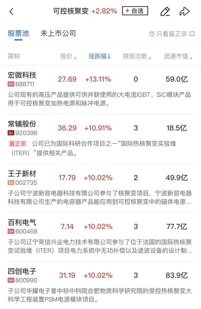 可控核聚变概念开盘走强,王子新材3天2板,四创电子、百利电气、雪人集团等涨停,常辅股份、海陆重工、国机重装等涨幅居前。