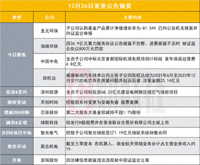 中铝国际(601068.SH)公告称,公司于2025年12月26日与境外客户签署了某项目合同,合同总金额约为140亿元人民币。该客户履约能力较强,公司及子公司均与该客户不存在关联关系。合同的签订有助于公司业务的发展,合同收入将根据履约进度逐步确认,预计会对公司收入产生积极影响。该合同的履行对公司业务独立性不构成影响,亦不会因履行该合同而对合同交易对手方形成依赖。然而,合同履约过程中可能面临政策、市场、环境等不可预计或不可抗力因素的影响,导致合同无法如期或全面履行,存在一定的不确定性。