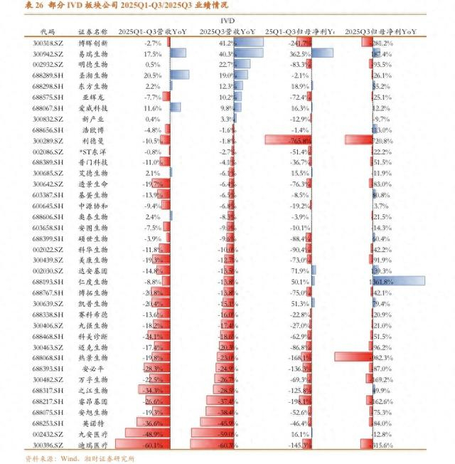 统计数据显示,2025年前三季度,A股体外诊断板块实现营业总收入276.2亿元,同比下降14.5%,归母净利润实现44.9亿元,同比下降26.4%,已连续三年呈现下滑态势。