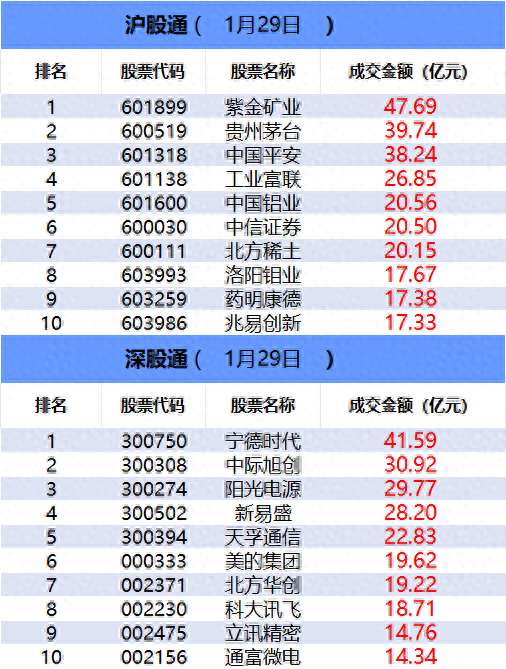 从沪股通前十大成交个股来看,紫金矿业位居首位;贵州茅台和中国平安分居二、三位。