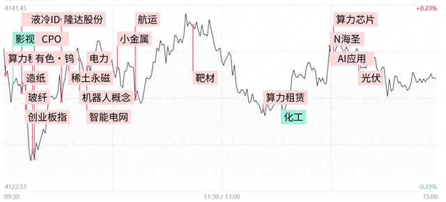 整体来看,今日市场的热点主要还是围绕着算力链所展开,CPO为代表的算力硬件再传导至算力租赁、云服务、液冷概念,再到延伸的电网设备,形成了完整的景气度传导链条,资金布局呈现出“核心+配套+延伸”的多元化格局。不过需注意的是,目前市场仍以轮动为主,在今日算力链全线爆发后,后续或将再度陷入分化,把握短线节奏或是关键。