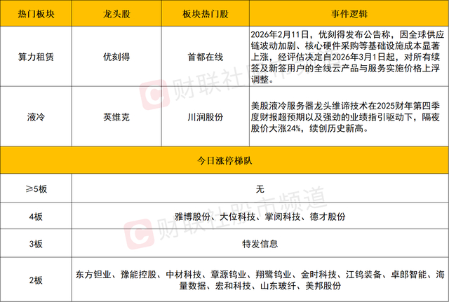 液冷概念再度活跃,川润股份、英维克、大元泵业、科士达、锐捷网络涨停,申菱环境、方盛股份、依米康等个股涨幅居前。消息面上,美股液冷服务器龙头维谛技术在2025财年第四季度财报超预期以及强劲的业绩指引驱动下,隔夜股价大涨24%,续创历史新高。