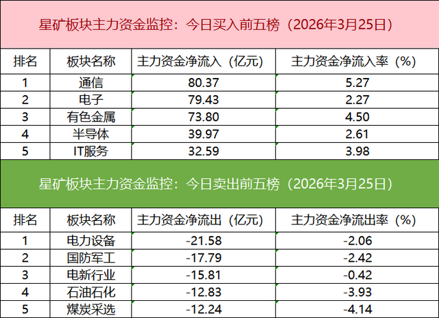 从主力板块资金监控数据来看,通信板块主力资金净流入居首。
